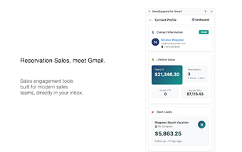 SendSquared สำหรับ Gmail เป็นส่วนเสริม Chrome ฟรีที่ออกแบบมาโดยเฉพาะสำหรับอุตสาหกรรมการบริการ เครื่องมือนี้รวมเข้ากับ Gmail ได้อย่างราบรื่น ช่วยให้ผู้ใช้สามารถเข้าถึงโปรไฟล์แขกที่สำคัญ รายละเอียดการจอง และเมตริกมูลค่าตลอดชีพได้โดยตรงจากกล่องจดหมายของตน ฟีเจอร์หลักประกอบด้วยการเข้าถึงข้อมูลแขกทันที ประวัติการจองที่สมบูรณ์ และความสามารถในการติดตามโอกาสที่เปิดอยู่พร้อมกับมูลค่าที่ประมาณการ ผู้ใช้ยังสามารถจดบันทึกอย่างรวดเร็วและกรองอีเมลอัตโนมัติได้อย่างมีประสิทธิภาพ ทำให้เป็นทรัพยากรที่มีค่าสำหรับมืออาชีพด้านการบริการ